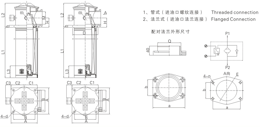 本過濾器直接安裝在油箱蓋板上,過濾器頭露在油箱外,回油筒體浸入油箱內(nèi),進(jìn)油口設(shè)有管式與法蘭式連接,從而簡化了系統(tǒng)管路,使系統(tǒng)布置較為緊湊,安裝連接更方便。